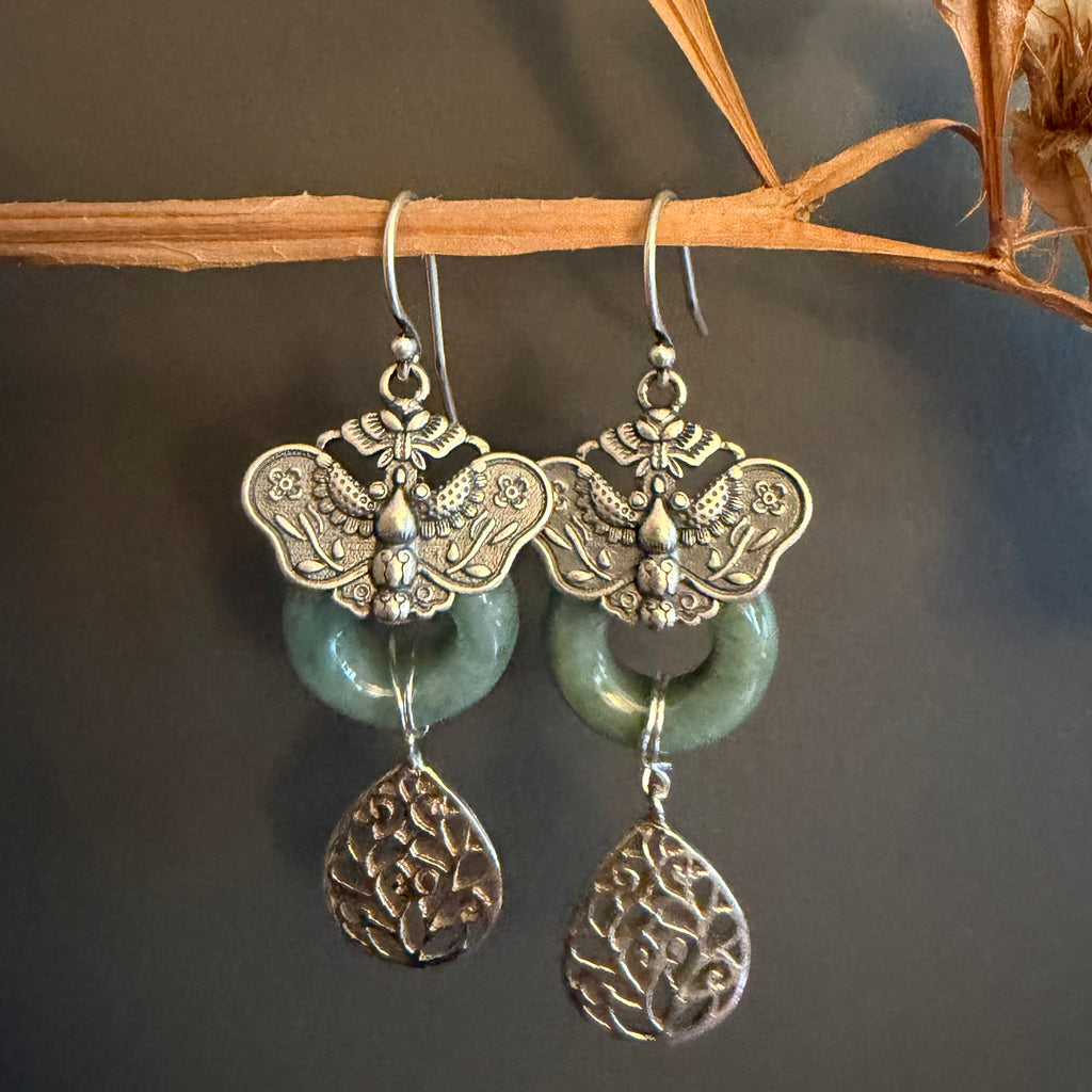 Home › Earrings › Jade Butterfly Filigree Earrings
